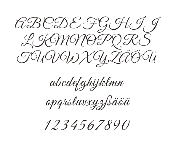 Bitte schauen Sie sich die Vorlage der verwendeten Schriftart an, um Irritationen zu vermeiden. Sehen Sie bitte davon ab, Texte in Versalien (Großbuchstaben) anzugeben.